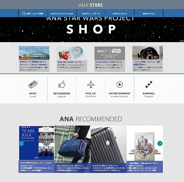 全日空商事ではANAグループの各種ウェブサービスを取りまとめたポータルサイトとして「ANA STORE」(=