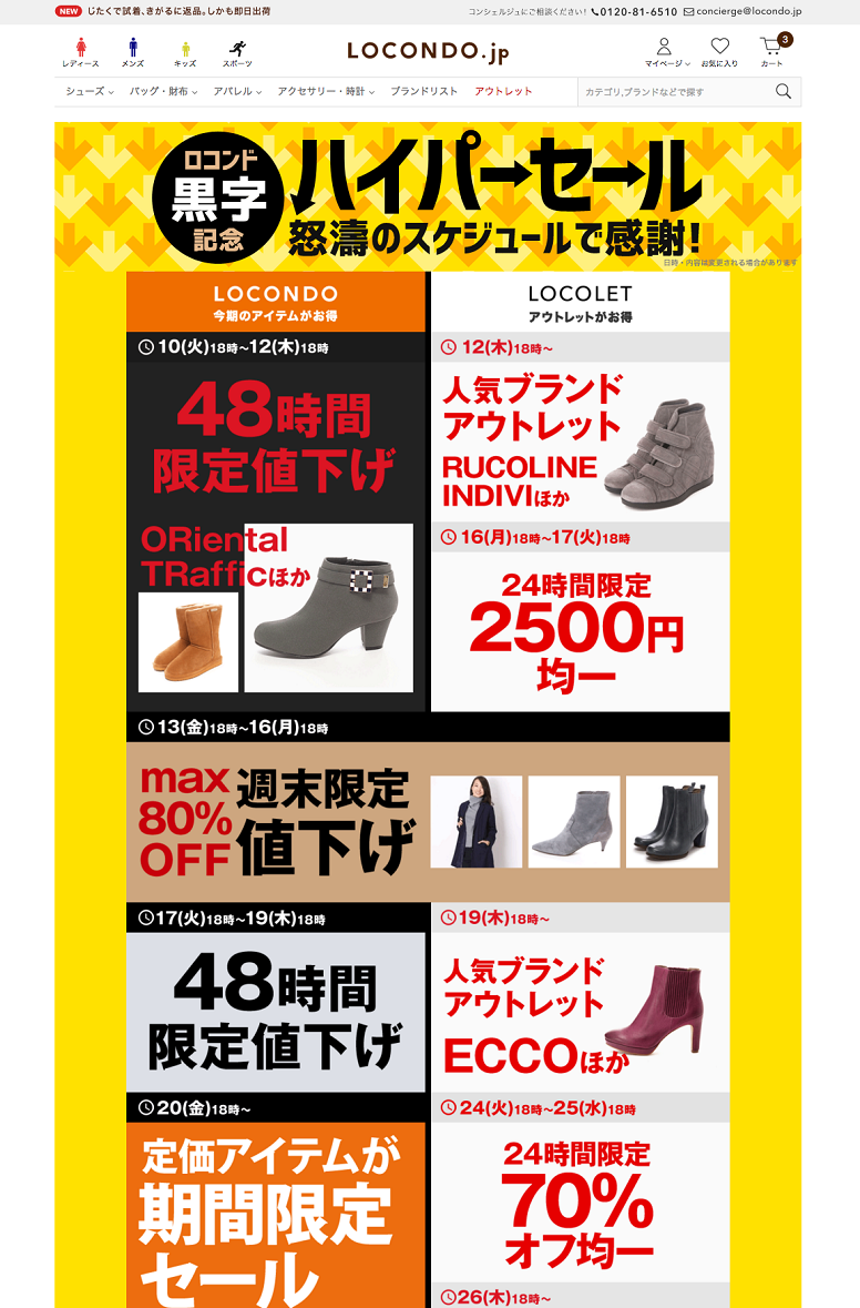 今回、単月黒字化の達成を記念し、同社では12月1日から「祝・黒字化!ハイパーセール」を実施(画像)。顧客の反応は良かったようだ。