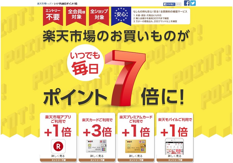 また、年会費1万800円の楽天プレミアムカードで購入した際はポイントを通常の楽天カードよりいつでも1%増やす。従来は「楽天市場コース」を選ぶと、火曜日・木曜日など指定された日に楽天市場で買い物をするとポイントが1%増えていた。通信サービス「楽天モバイル」利用者もポイントを1%増やし、付与ポイント制限をなくした。従来も1%増の施策は行っていたものの、付与上限額は毎月300ポイントだった。基本となるポイントの1%を含めてこれらの施策を合算すると、7%のポイントが付与される。