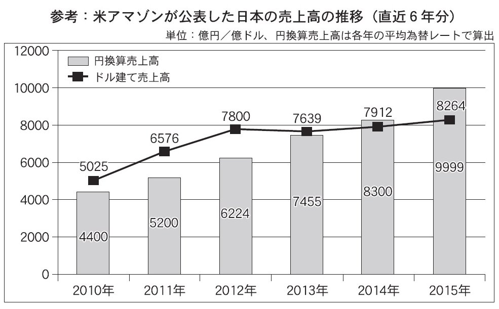2015年のアマゾンの日本売上、前年比2割増の1兆円に