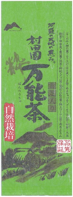 処分の対象になったのは、「容器包装」の表示。商品は、通販等で展開する主力商品「村田園万能茶(選/粋)400グラム入り」(=㊨画像) など4商品。「阿蘇の大地の恵み」「どくだみ、柿の葉、とうきび、はと麦、甜茶、くま笹、あまちゃづる......」などの記載とともに、日本の山里を思わせる風 景のイラストを記載することによってあたかも原材料が日本産であるかのように表示していた。実際は、「大麦」や「どくだみ」の一部以外の原材料は外国産 だった。