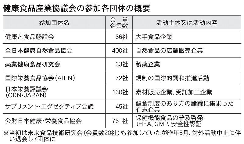 事務局は、業界最大規模の日本健康・栄養食品協会(日健栄協)内に間借りしている状況。運営も専任は1人。今回、理事も協議会に参加する業界団体から選出したが、「『(理事の数に設定した)15人の枠内で各団体から自由に出して』ということになった」(協議会関係者)という。協議会に直接、企業が加盟する状況になく、運転資金も参加団体が拠出する。