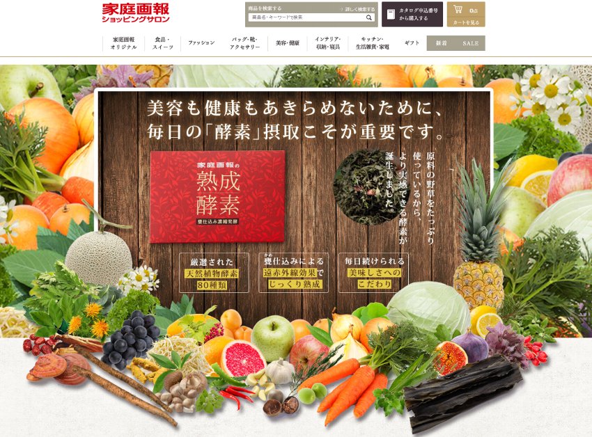 また、昨年12月からは新規通販顧客の開拓に向けて広告代理店を通じた他社媒体へのチラシ同梱をスタート。旅行会社やカード会社の会員誌、送付物に「えびめん」や、新たに始めたリピート通販商材の「家庭画報の熟成酵素」(画像)など、訴求力の高いオリジナル商品を提案した。