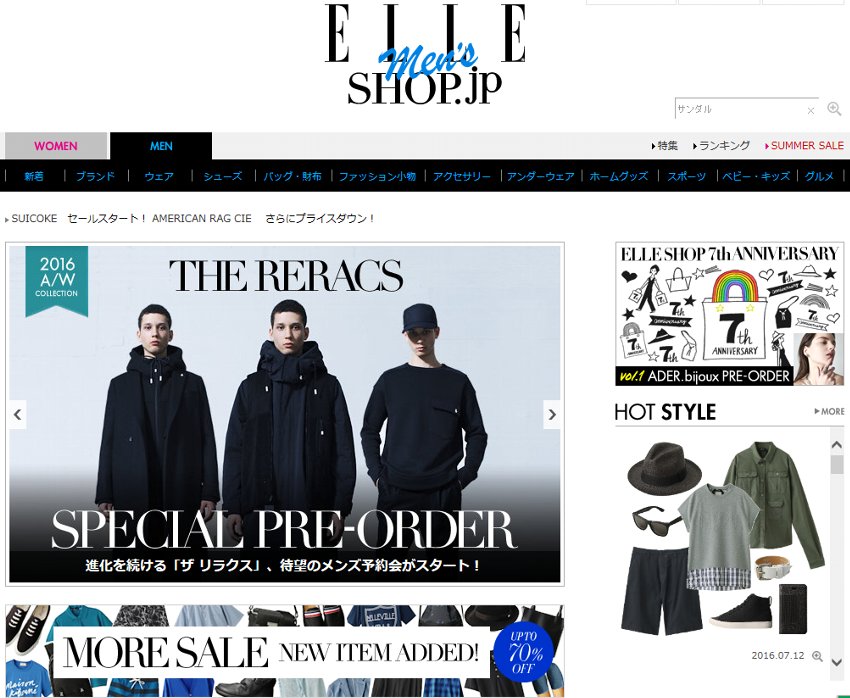 同社ではファッション誌「メンズクラブ」の通販サイト「メンズ・プラスショップ」に加え、昨年2月には「エル・ショップ」内でもメンズ商材の取り扱いを本格化している(画像)。