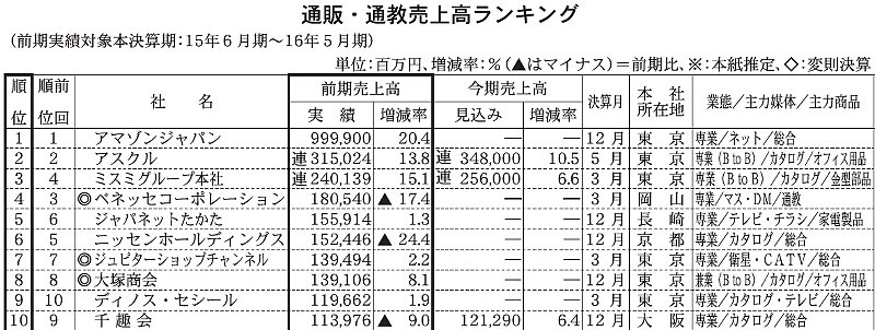 第66回通販・通教売上高ランキング 上位300社、市場規模は5.1%増