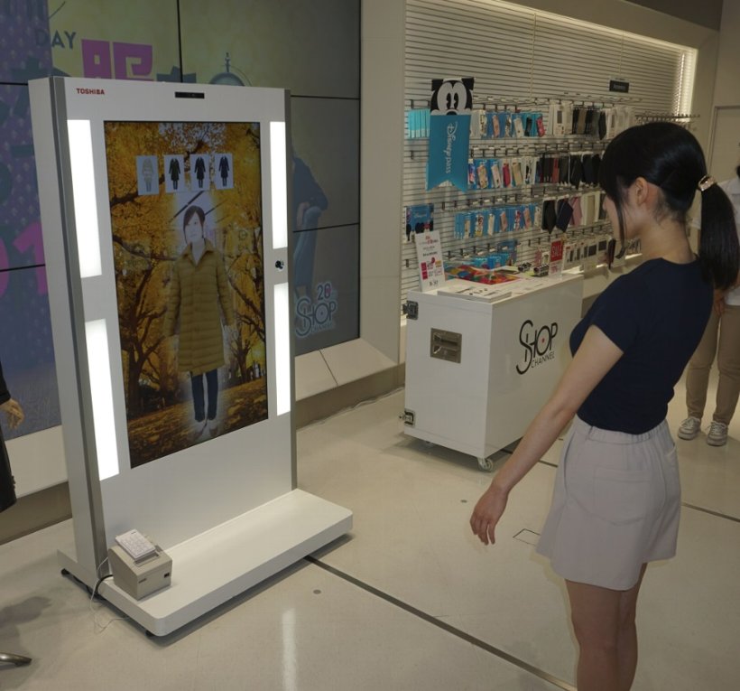 8月15~18日の4日間限定で、KDDIが展開する「au」直営の東京・新宿の店舗「au SHINJYUKU」と大阪・梅田の「au OSAKA」の店内に東芝が開発した大型ディスプレイ付きの仮想試着機を設置。同機の前に立った利用者の身体をカメラで映写し、その上に利用者が選択した衣料品の画像データを重ねあわせ、あたかも試着しているように見えるもの。同機から発行されるQRコードをスマホで読み込むことで後で「試着した姿」を確認することも可能。今回は8月18日にJSCで放送する24時間編成の特番「こんな服を待っていた2016秋」で販売する「元町ゼラールダウンベスト付ショールカラーラムレザーコート」など11種類の衣料品の画像データを用意して仮想試着に対応した。