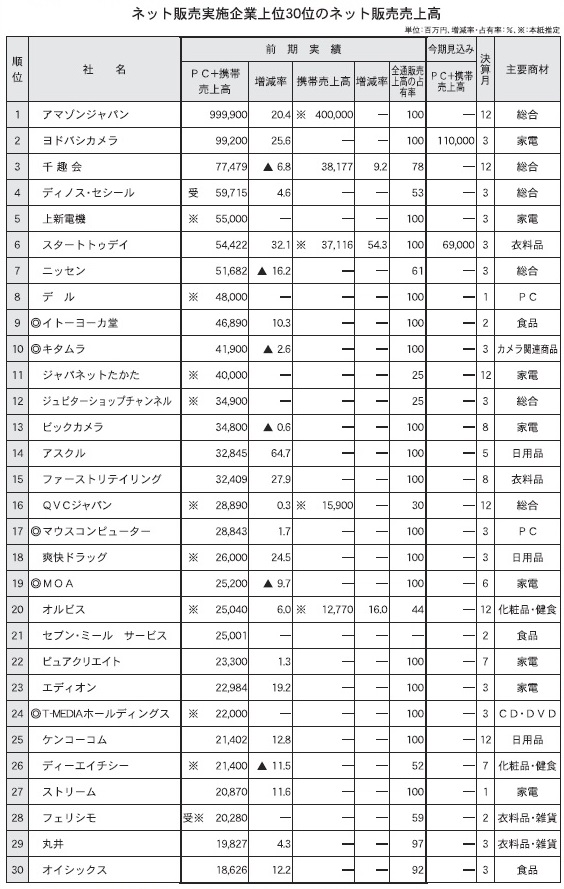 月刊ネット販売調べ 2015年度のネット販売市場、主要300社で3兆2522億円