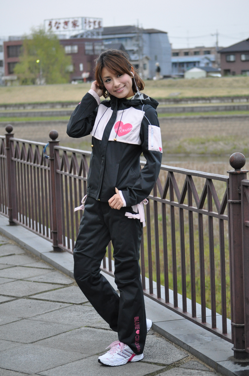 「若い女性でも人目を気にせずに着用できる可愛いダイエットスーツを作りたかった」(同)としており、左胸や腰、お尻部分などにはハートをモチーフにした「ブルークラッシュ」のロゴが入り、ボトムのポケットにはワンポイントとなるリボンを付けた。また、走りながら音楽が聴けるよう、イヤホン通しのある内ポケットも付いている。