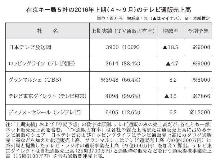 【在京キー局上期TV通販売上】 ディノス・セシールが首位に