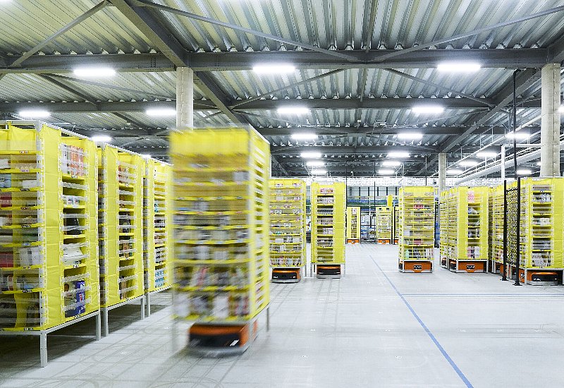 「人が棚に商品を取りに行くのではなく、棚が人のところまで持ってくる?」──。アマゾンジャパンは12月6日、今夏から稼働を開始した同社の新たな物流拠点で最新の"物流ロボ"を導入した「アマゾン川崎フルフィルメントセンター(FC)」を初めて公開した。