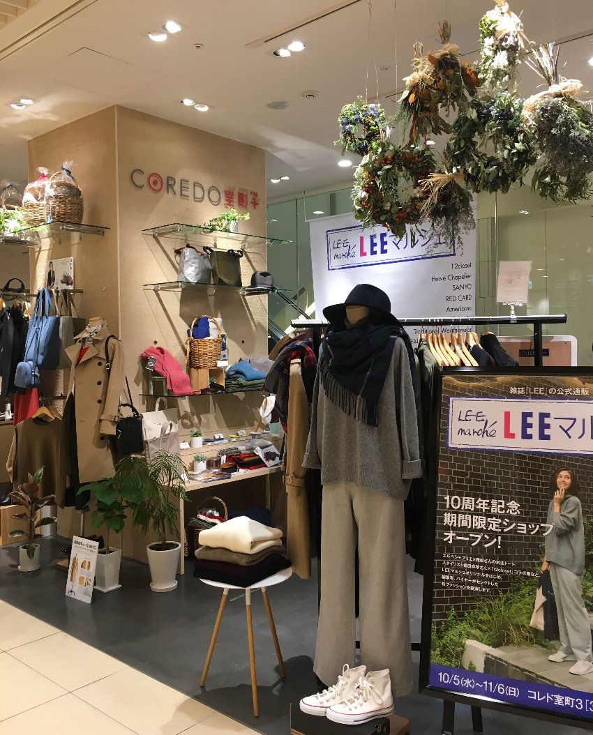 同社は通販誌「LEEマルシェ」が10周年を迎えたのを記念したポップアップストアを昨年秋に開設。第1弾として、10月5日~11月6日までの約1カ月間、東京都中央区の商業施設「コレド室町3」3階の催事エリアに出店し、スタイリストの福田麻琴さんと通販誌の独自ブランド「トゥエルブクローゼット」のコラボ新作や、スタイリストの吉村友希さんが厳選したファッション小物など、アパレルと服飾雑貨を展開した(画像)。