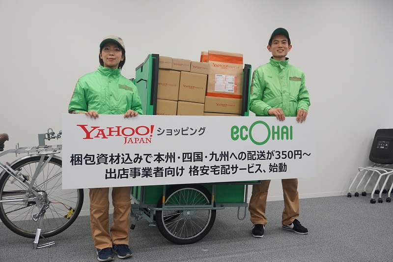 自転車を使った宅配便業務を行うエコ配は2月20日から、ヤフーの仮想モールの出店者向けに格安な発送サービスを始める。東京や関西の大都市圏の出店者に限られるが1回350円で発送でき、最短翌日に配達する。また、荷物の集荷にも対応、さらに中小出店者にとって頭の痛いコストとなる段ボールなど梱包資材もセットで提供する。ヤフーが抱える膨大な出店者に対し、安価な配送サービスを展開することで利用社の拡大を狙う。