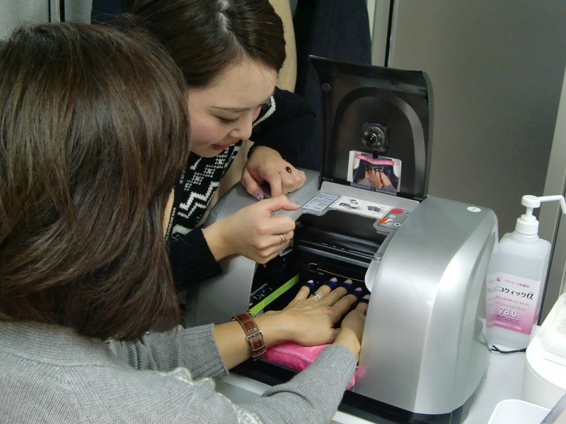 慣れない業界でのルート開拓は課題だが、美容室やネイルサロン、エステ店などをターゲットにしているのに加え、サービスをパッケージ化して商業施設などのイベントや集客ツールとしての活用も提案していく。具体的には、例えば商業施設がアニメ関連の催事を行うのに合わせて、アニメファンにキャラクターデザインのネイルを提案したり、着物のレンタル会社と組んで柄に合ったジェルネイルを一緒に提供することなどもできるほか、「ハロウィンやクリスマスなどイベント時の利用も期待できる」(山田マネージャー)とし、今年は150台、5年後の21年には1000台の導入を目指すことにしている。
