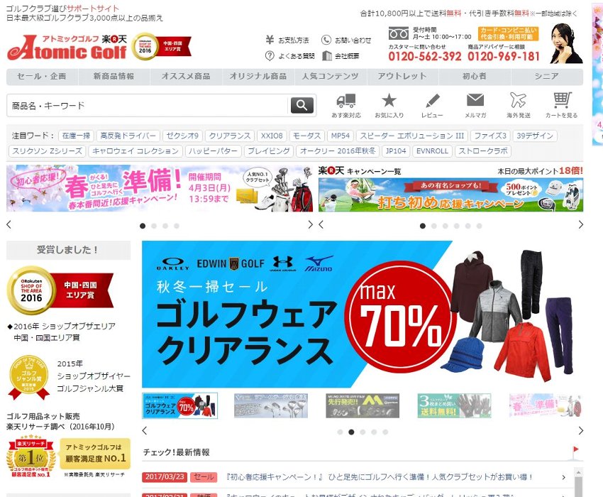 中古ゴルフクラブのフランチャイズ店からスタートした同社が、楽天市場に出店したのは2002年頃。ヤフーのネット競売「ヤフオク!」における中古クラブ販売でネット販売に参入した同社だが、楽天ではスタートからわずか3カ月で月商1000万円を達成したという。