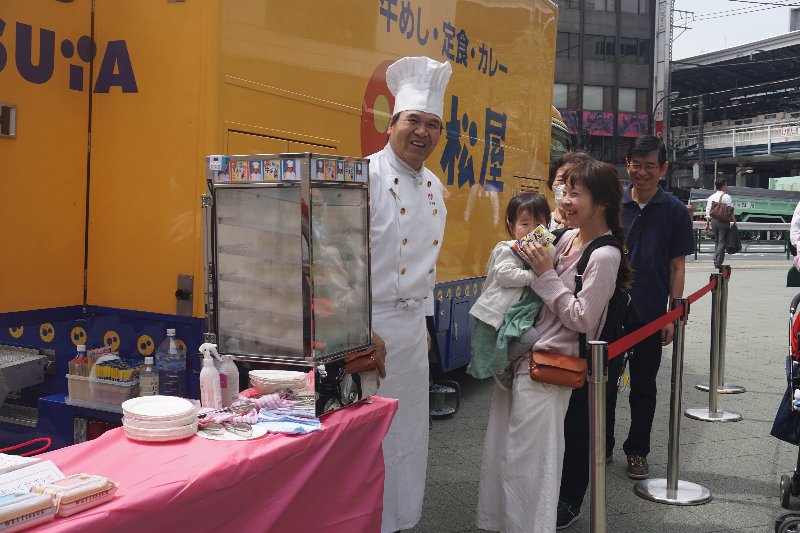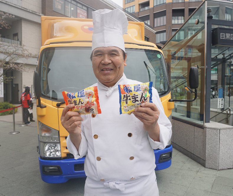 予約販売開始に合わせて東京・中目黒の駅前で4月17、18日の2日間、試食イベントを実施。調理可能な同社のキッチンカー「サンライズ号」を登場させて、「牛まん」を街行く人に無料で配り、同商品をPRする試みを行った。「牛まん」の開発を監修した金さんも試食イベントに参加して自ら「牛まん」を配った。「(牛まん)が完成するまで1年近くもかかった。大変だったけど、すごくおいしくできてうれしい。多くの皆さんに食べて欲しい」(金さん)とした。