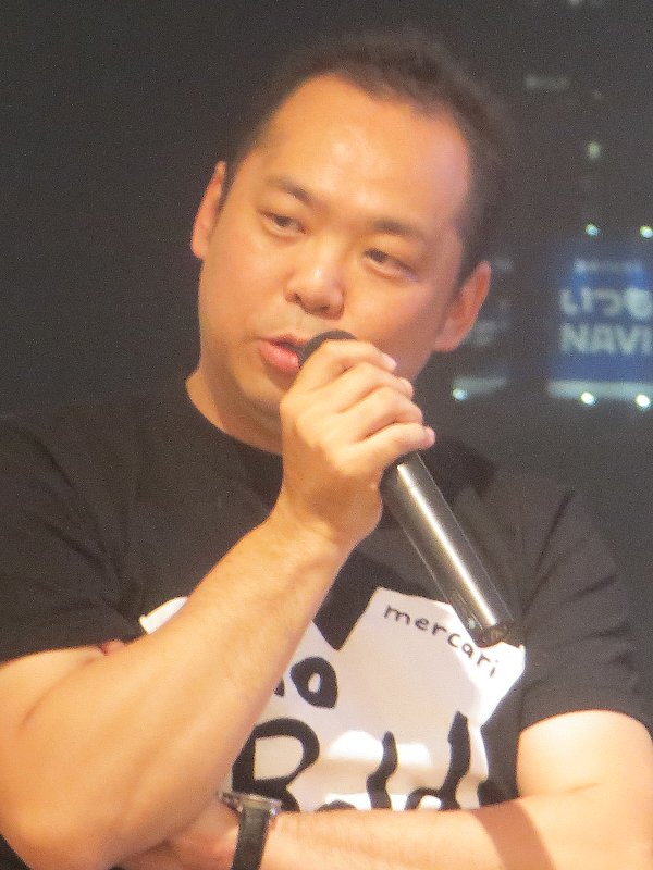 ㊨画像=以下、井手)とメルカリの小泉文明社長兼COO(