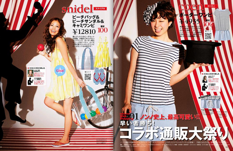 「ノンノ」で実施した特集は「50Pまるごと!ノンノ通販大特集」。同誌で通常4~6ページの通販企画を拡大したもので、50ページにわたって読者に人気のアパレルブランドの商品を紹介した。