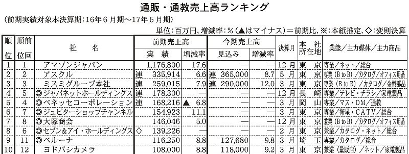 第68回通販・通教売上高ランキング 上位300社で6・4%増の6・5兆円に