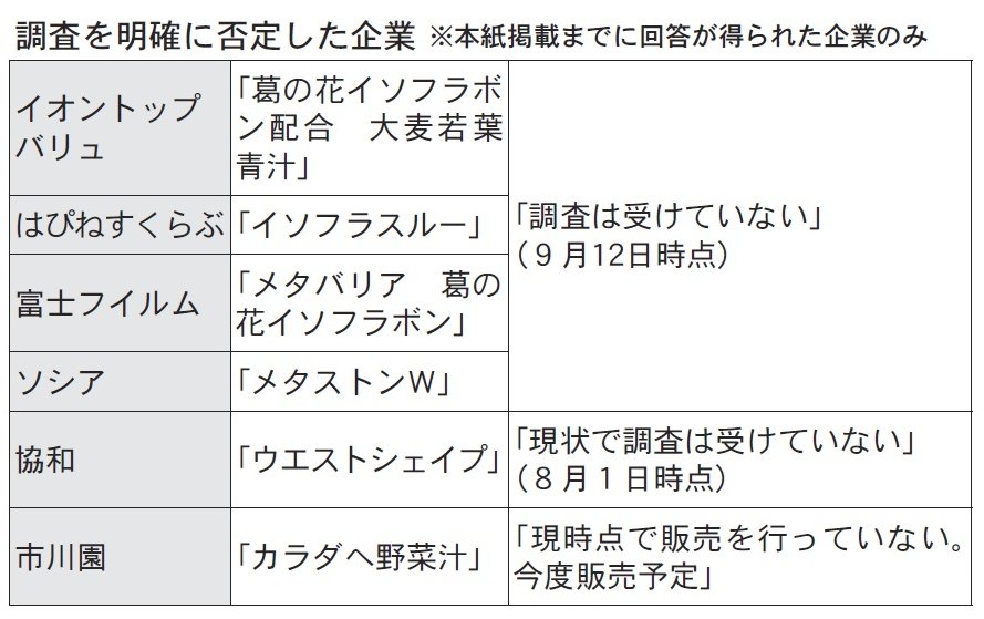 だが、今回の騒動拡大の背景にも「SR」により、活用企業が増えたことが一因としてあるとみられる。今回、消費者庁による「葛の花」に関する調査について、本紙掲載までに回答が得られた企業で「調査を受けていない」と明確に否定したのは6社(社告掲載企業を除く)。調査対象は十数社に及んでいるとされる。