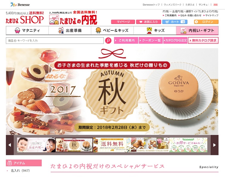ベネッセコーポレーションは9月に、出産内祝いギフトの通販サービスをリニューアルした。両親や親戚、友人、職場など贈り先に合わせたギフト選びを提案していく。