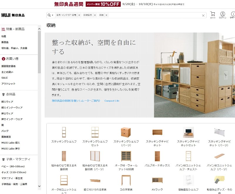 良品計画は11月から来年2月にかけて、段階的に通販サイトの「無印良品ネットストア」(画像)とスマートフォンアプリの「ムジ・パスポート」のリニューアルを行う。