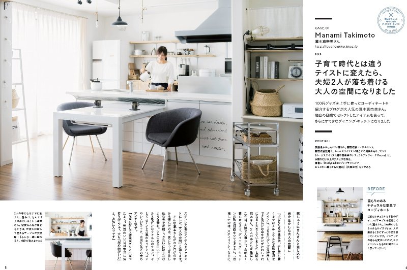 創刊号では24ページに渡って、ブログの月間アクセス数が100万を超える瀧本真奈美さんやたっきーママさんをはじめ、ゆーママさん、安川美樹さんら料理やインテリアの分野で活躍する人気の主婦ブロガー8人が「自宅のダイニング・キッチンの改造に挑戦する」というテーマに沿って、通販カタログ「ディノスリビング」や「ハウススタイリング」で販売中の家具・収納、キッチン雑貨、キッチン家電、調理器具などの中から自らが独自の視点でセレクトする特集企画を掲載(=画像㊦。快適な座り心地に加え、背もたれが低く、空間に広がりができる「Lyonアームチェア」(税抜2万7593円)や普段は幅140センチで、人が集まる時には幅200センチに伸ばして使用できるダイニングテーブル「Steady伸縮式ダイニングテーブル」(同6万9900円)、実用性とインテリア性を兼ね備えたキッチンワゴン「ステンレスキッチンワゴン」(同1万5048円)、中に収納したものが見えずにすっきりと収納できるステンレス製のスタイリッシュなデザインの「トースターラック」(同9900円)、野菜などの薄切りや千切りなど様々な32種類の切り方ができ、時短調理にも役立つ「ドイツ製万能キッチンスライサー」(同5600円)など27アイテムを各ブロガーが紹介した。このほか、「ディノス」が厳選した商品合計1250商品を紹介している。