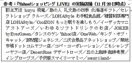 ライブコマースは出店者自らが出演し、動画の内容を考え、また、撮影しなければならないなど難易度が高く、参加を希望する出店者は少ないのではないかと懸念されていたものの、配信を開始した11月5日から同20日までの約2週間ですでに動画の生配信を行った店舗は22店舗で、配信動画数は100超となっている。