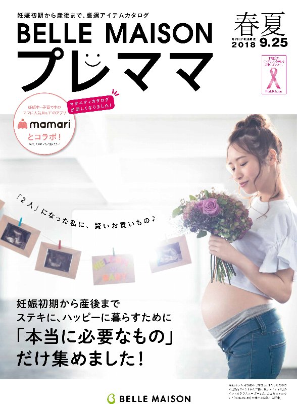 2018年春夏号の表紙モデルには「ママリ」のインスタグラムユーザーが登場。全60ページのカタログでは商品掲載数を従来の35%に当たる97アイテムに絞り、その分、豊富な情報を掲載する。部数は約26万部で、年2回発行して産院や希望者に配布する。