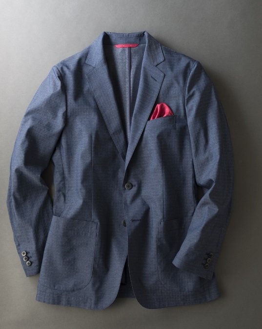 主な商品として、まず、ウエアでは昨今の"ジャケパン"のビジネススタイルの盛り上がりを背景にテキスタイルメーカーとコラボした携帯できるジャケット「パッカブルジャケット」(=画像、税込価格3万6720円)がある。巻き込むように折り畳んで内ポケットに付属されたベルトで留めることで小さく収納できる使い勝手の良さを特徴に持っており、広げた時もシワが残りにくい仕様となっている。