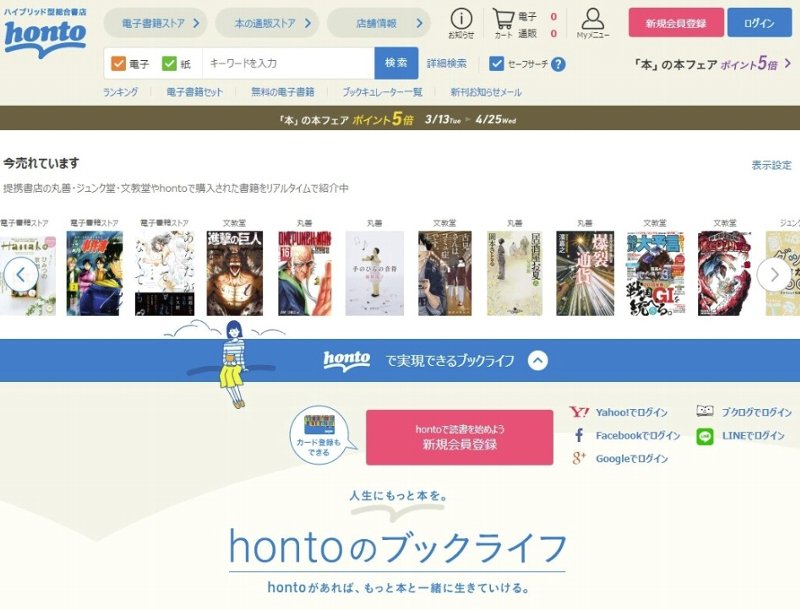 大日本印刷(DNP)グループで書籍のネット販売を手がけるトゥ・ディファクトが通販サイトの新規顧客の獲得を進めている。ファッション通販サイト「ZOZOTOWN(ゾゾタウン)」を活用した販促や、無料通信アプリ「LINE」とのID連携などを開始。運営する通販サイト「honto(ホント)」(=画像)の主要顧客層である"本好き"以外の層に対してリーチを図るのが狙いだ。