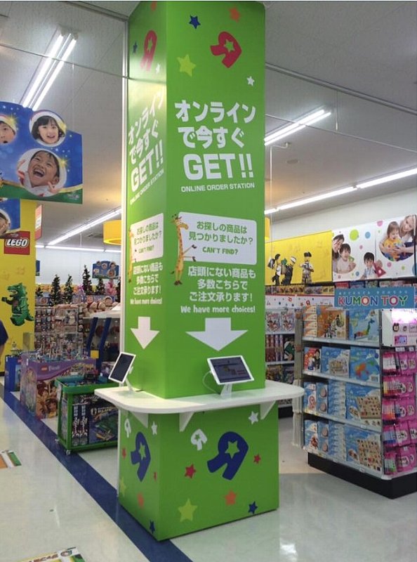まずは実店舗で商品が欠品している際に、店内の専用カウンターのタブレットなどで通販サイトの在庫を確認してその場で注文できるサービス「ストア・オーダー・システム」(画像)を拡充。これまでは利用対象を自転車やベビーカーといった大型商品中心に絞っていたが、昨年5月からは全商品で対応するようにした。店内に配置するタブレットについても各店舗2台以上配置するようにしていった。