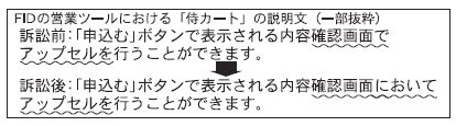 実際、FIDは、説明文中の内容を「確認画面においてアップセル」に変更してはいる。