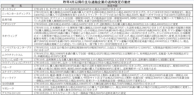 100~200円の上げ幅に<主要企業の送料改定は?> 昨秋~4月がピークだが今後も