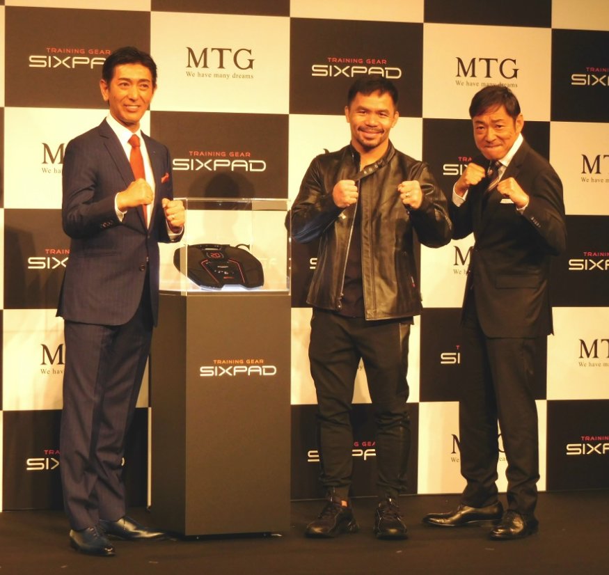なお、9月14日にはアンバサダーとして同商品のテレビCMに起用したプロボクサーのマニー・パッキャオ氏と、ゲストに俳優の香川照之氏を招いた商品発表会(画像)を都内で開催した。発表会で同商品を体験するパフォーマンスも行ったパッキャオ氏は「非常に状態が良くなったと思う。快適に使え、日々のトレーニングに適している。体のコンディショニングに役立つ筋肉を形成するのに非常に有用な製品」と語った。