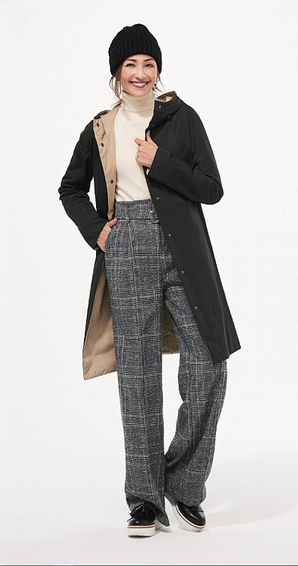 シルエットを美しく見せることにこだわるドゥクラッセでは今シーズン、「寒い冬は思わず厚手の服を着込んでしまうが、着ぶくれでオシャレさを損なう」という多くの声を受けて、高い防寒機能を兼ね備えながらも"スリムで暖かい"商品として「マジカルサーモ・フードコート」を開発した。