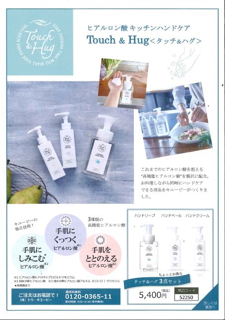 継続率の向上に向け、クロスセルも強化している。「ヒアロモイスチャー240」に関連の深いスキンケア商品、ヒアルロン酸配合のハンドソープやハンドクリームを同梱物で提案し、「ヒアルロン酸」の魅力を分かりやすく伝えることで効果実感を得やすくしている(=画像)。卵由来の抗ウイルス成分を配合したキッチン用アルコール除菌スプレーなど、豊富な商品ラインアップを持つメーカーとしての強みも活かしクロスセルを提案する。
