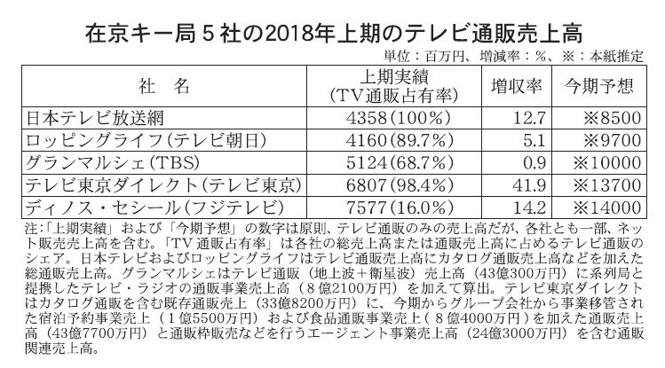 在京テレビキー局の上期TV通販売上 ディノス・セシールがトップ、各社とも前年上期を上回り順調