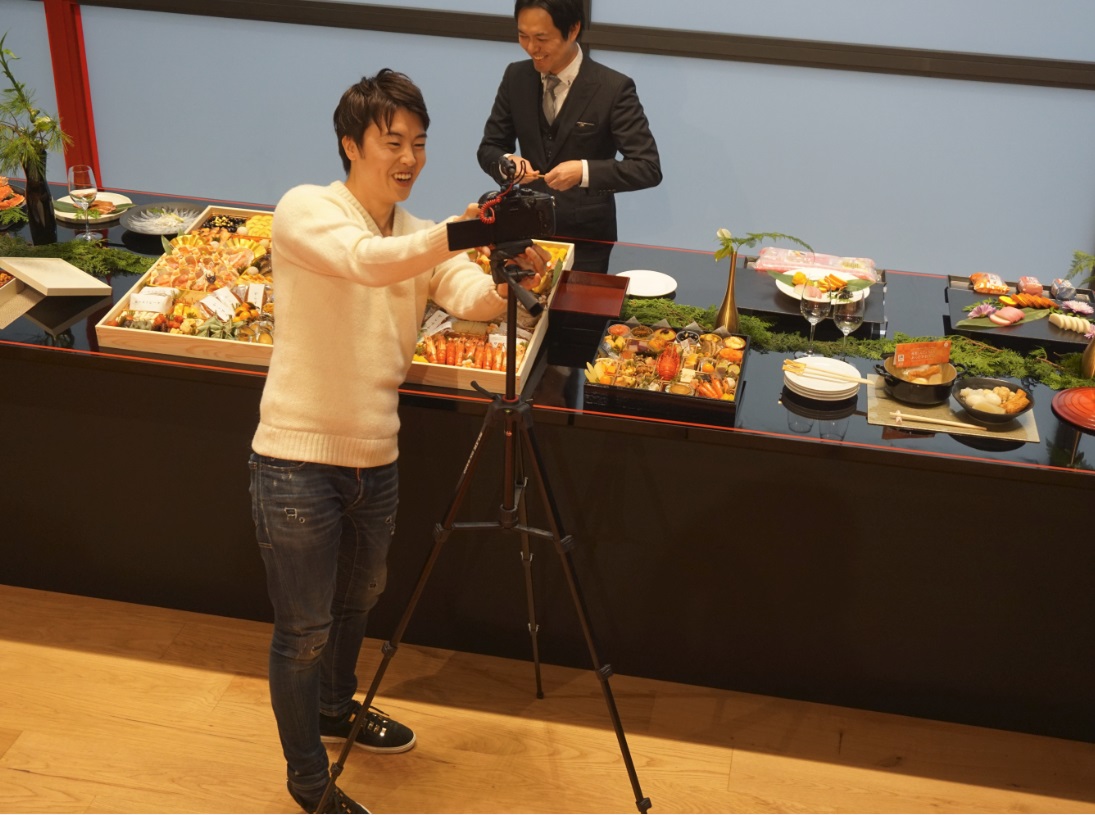 アマゾンジャパンがライブ配信する動画を用いて商品を紹介、販売するいわゆるライブコマースに乗り出す。12月7日から80時間限定で同社通販サイトで実施するセールの期間中に実施するもの。米本社などではすでにライブコマースは実施しているが日本では初めて。マスオ氏ら複数の人気ユーチューバーを起用し、同セールで販売する目玉商品を紹介、同社の公式SNSなどで配信する(=写真=マスオ氏がアマゾンで販売するおせちを紹介する動画を収録するデモの様子)。動画による情報紹介に長けたユーチューバーの独自の視点による商品紹介で訴求力を高める狙いのほか、当該ユーチューバーが抱える多数のフォロワーへ商品情報を発信し、新規顧客開拓や販売増につなげたい狙いのようだ。