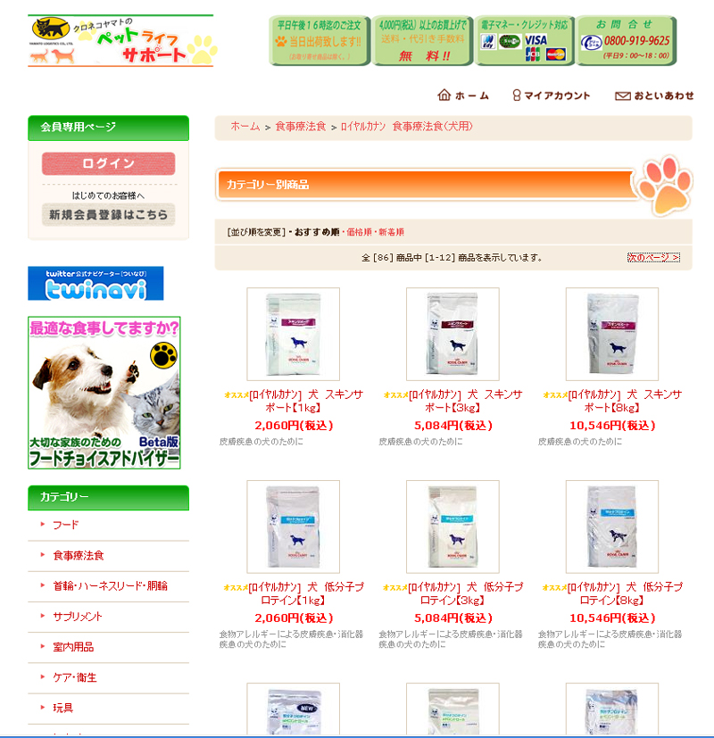 「ペットライフサポート」では現在、約650品目の商品を展開。ペットフードやペットシートなどが販売の中心となっている。これに対し、YLCが第2フェーズとして準備を進めているのは、ペット用療法食の強化。サイトのコンセプトでもあるペットの健康管理支援の拡充を狙ったものだ。