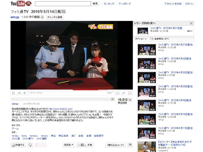 これと並ぶもうひとつの「ファミ通販」の特徴が、動画による訴求だ。エビテンの商品ページにゲームの実況プレイ動画などを掲載するほか、有料動画「ファミ通TV」のダイジェスト版「ファミ通832」をユーチューブ上で毎週金曜更新で展開。この中で、3分程度で声優とネット販売の担当者が通販商品を紹介している。