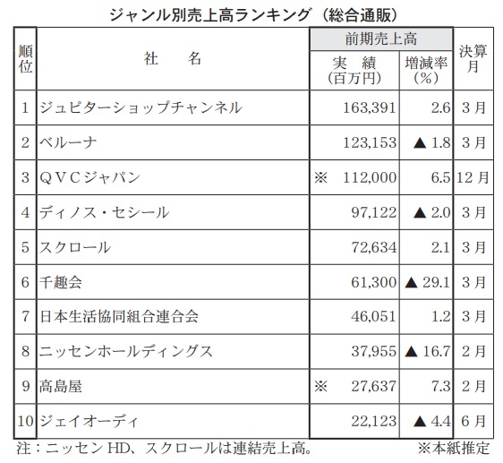 通販新聞社は7月、「第74回通販・通教売上高ランキング調査」を実施し、売上上位300社の通販売上高を調査し、ランキングを発表した(前号第1760号参照)。当該ランキングの中から、「総合通販」「家電」「家具」「メーカー通販」を展開する上位の通販実施企業の直近の売上高を記載したランキング表を掲載しつつ、各分野の主要プレイヤーの状況と各市場の動向などを見ていく。