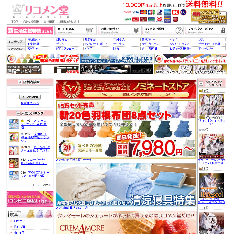 その一方で、マーケティング分析は徹底している。次のヒット商品を探すことも重要だが「売れた商品をさらに売る」ということに重点を置き、サイト内の20万アイテムをアクセス数や顧客層などを細かくデータ化し、効果的なSEO戦略を立てて成果を挙げている。今夏のヒット商品は温度調整素材を使用した「清涼寝具」。昨年、試験的に販売した時に、取り扱い数が少ないながらも売れ行きが好調だったところに目を付け、今年本格的に販売。猛暑の影響もあって大ヒット商品になった。1日平均で100点以上、多い時は500点も売れたという。