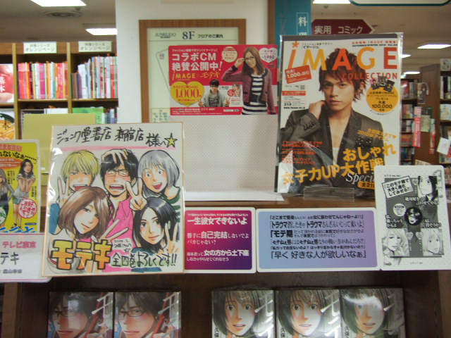 特設サイトでは商品紹介のほか、CMを閲覧できるようにした。別のページでは、同じく野波さんが選んだ、CMとは違うコーディネートのアイテムを購入可能にしている。また、書店での販促も展開しており、POPを使った宣伝のほか、モテキの特設コーナーでは原作コミックと一緒にカタログを並べることで、「書店でのカタログ消化率を高めたい」(イマージュ)という。