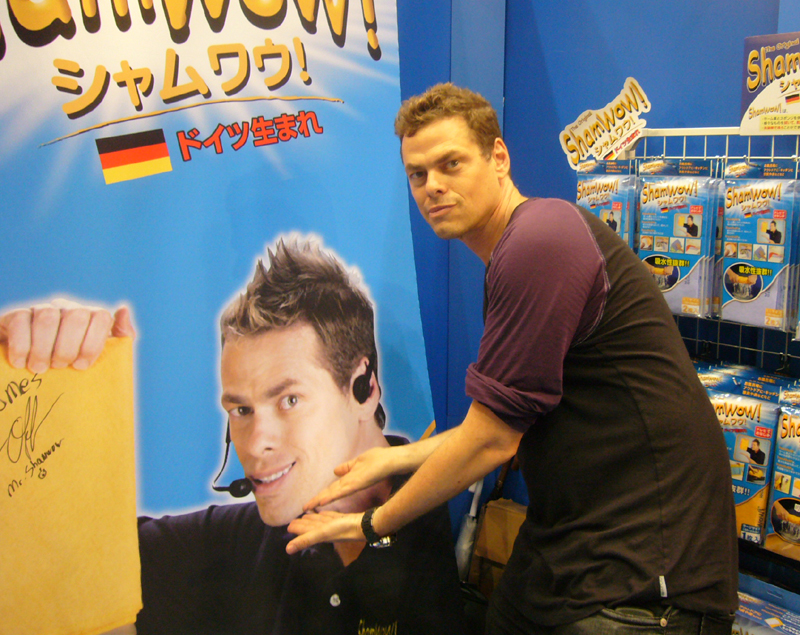 輸入雑貨の卸販売を行うヒルトップが昨年1月に発売してからわずか1年余りで10万個超を販売した万能クロス「シャムワウ!」。一般的なタオルと比べ数倍の吸収力があるとされるこのクロスは、台所や浴室、車の掃除からカーペットの飲みこぼしの掃除など幅広い用途が受け、今なお月数千個ペースで出荷している。その売れ行きを後押しするのが、テレビCMでテンポの良いデモンストレーションを披露するビンス・オファーさんだ。この人物、米国で約200万枚の販売実績を持つ「シャムワウ!」を開発した米企業の代表だが、今年9月、ヒルトップのギフトショー出展に併せて初来日すると聞き、直撃した。