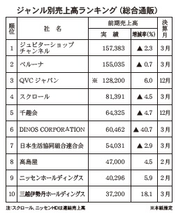 テレビや紙媒体での総合通販(ネット専業除く)を展開する通販事業者のうち、売上高上位10社を抜粋した。注目すべき各社の前期の状況を見ていく。