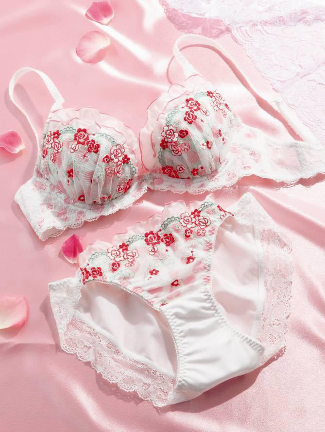 新商品には、寝具にも使われる柔らかい低反発ウレタンパッドを使用し、バストを自然にボリュームアップできるようにしたほか、バストを脇から押さえる「サイドサポートパネル」を採用しており、サイドをスリムに見せると同時に、バストが自然に前に寄るようになっている。また、デザインはハートのプリントの上に花柄刺しゅうのレースを乗せたものとした。