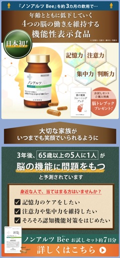 過去に蜂の子の健食(画像㊨)に対する調査、認知機能関連の機能性表示食品で改善指導を受けた(画像は指摘を受けた広告と無関係))。
