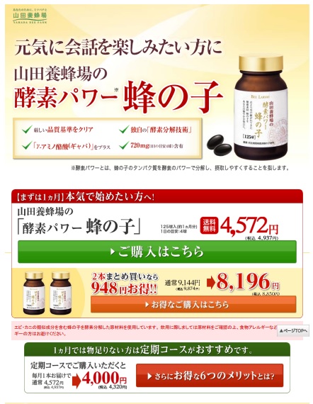 山田養蜂場は、耳の健康ケアに対応する商品として「酵素パワー蜂の子」を販売していた。前述の表現は、同社のものとは異なるが、「指摘を受けたのは事実」(当時)と、本紙取材に回答している。