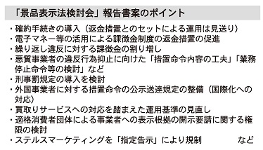 ――報告書案は景表法の制裁強化、ステルスマーケティングへの規制導入など規制強化の側面が強い。