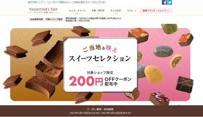 楽天市場では、1月4日から今年のバレンタインデー特集ページを公開。チョコレートやスイーツを中心に、約5万点のバレンタインデー関連商品を紹介している。